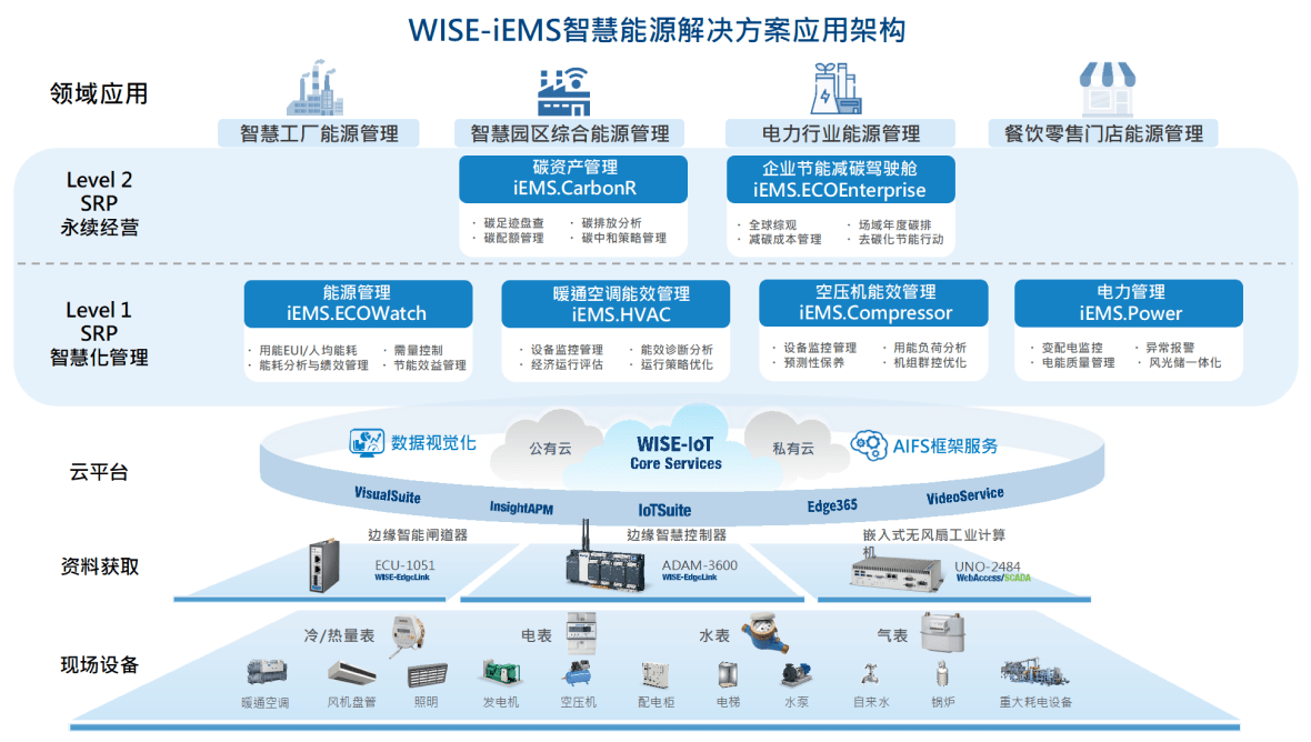 研华iEMS智慧能源管理解决方案(iEMS)基于“云智一体”能力,融合人工智能、大数据、云计算、数字孪生、物联网等技术,以数据驱动传统能源体系向零碳智慧能源体系转型。iEMS覆盖能源生产、使用、调度及碳交易等环节,提供能源数字孪生、能耗监测、调度控制、设备运维和碳中和监测等能力,助力企业追踪碳足迹、降低碳排放,推动碳交易,实现零碳目标。
